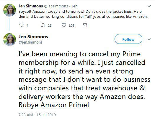 与此同时,许多网友在推特上号召人们不仅在会员日当天抵制亚马逊,而且取消他们的Prime会员资格。