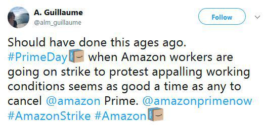 Should have done this ages ago。 #PrimeDay when Amazon workers are going on strike to protest appalling working conditions seems as good a time as any to cancel @amazon Prime。