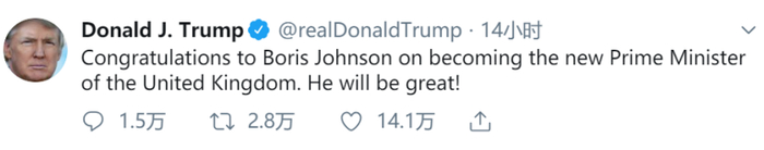 发型、身材很像鲍里斯的特朗普在大西洋彼岸发来“贺电”;