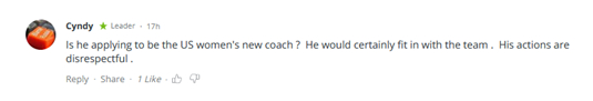 网友“Cyndy”在指责布萨托的同时,还拉上了美国:“他在申请成为美国女排的新教练吗?那他肯定能融入这个团队。他的行为是无礼的。”