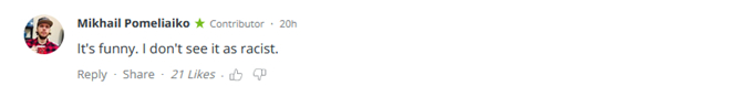 另有网友表示:“这很有趣。我倒不认为这是种族歧视。”