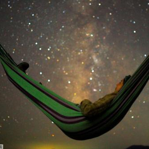 当地时间2018年8月13日,马其顿,科济亚克山一名女孩躺在吊床上,观看英仙座流星雨。