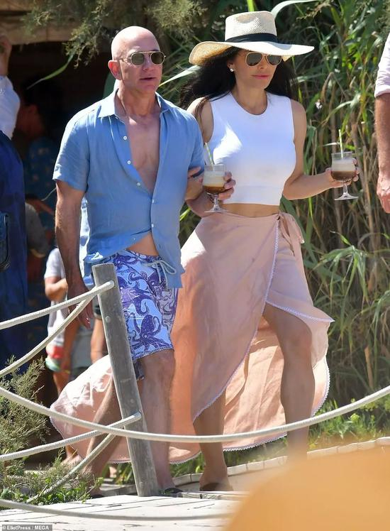 大概一周前,在法国避暑天堂蓝色海岸,贝佐斯搭上传媒大亨大卫·格芬价值2亿美元的游艇,戴着Garrett Leight墨镜,趿拉着Prada凉拖,挽上新女朋友劳伦·桑切斯的手,吹着海风,品着鸡尾酒,逍遥自在地开启了度假模式 ↓ ↓