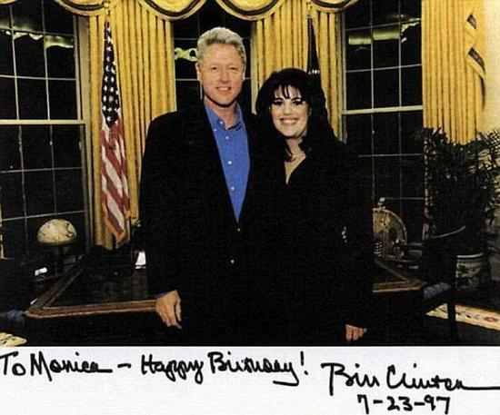 生日的时候会把俩人的合照和亲手写祝福送给莱温斯基。