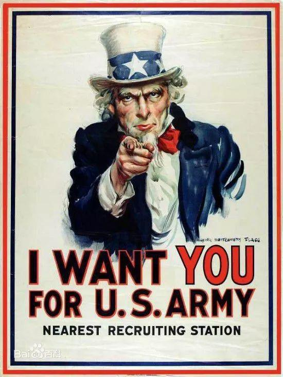 还摆出了著名美国招兵海报中山姆大叔的“I want you!”同款手势。