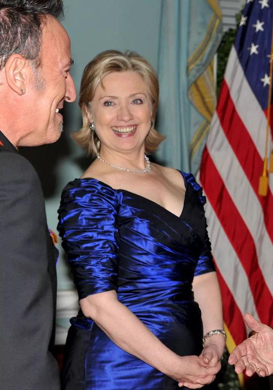 它既像克林顿妻子希拉里在2009年肯尼迪中心颁奖典礼上穿的那条。