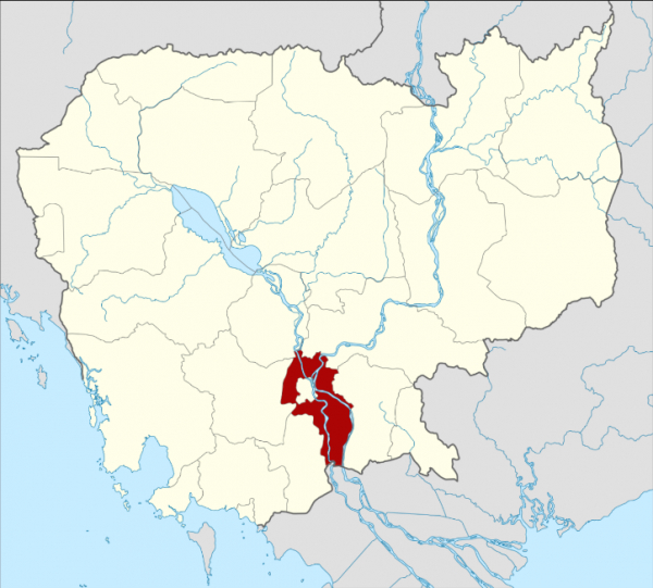 甘丹省位于柬埔寨的正南方(下左图红色区域,其中中空区域则是首都金边),而甘东新区正是金边12区之一(下右图橘色区域)。如果将金边与上海相比较,则甘丹省相当于长三角环沪区域(南通、无锡、嘉兴等城市),而甘东新区的地理位置和未来定位类似于浦东新区。