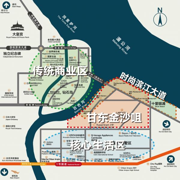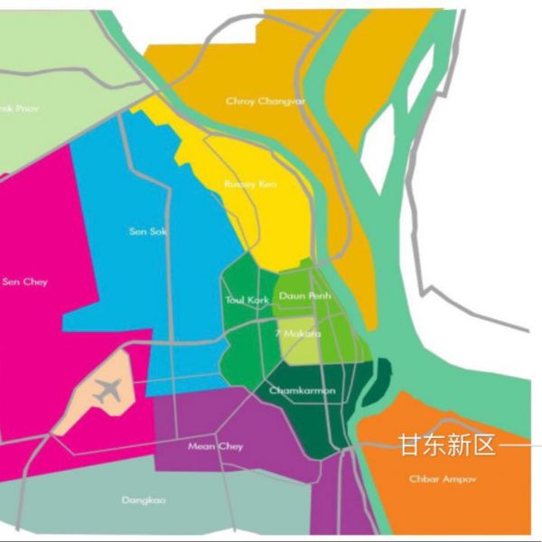 这里便是位于金边市东南方向的甘东新区(ChbarAmpov,俗称铁桥头区),这里与金边市传统主要商业区隔百色河相望,目前正处于大规模建设的起步阶段。从土地、政策还是城市规划等角度来看,甘东新区都有着极具吸引力的特殊地位和发展潜力。