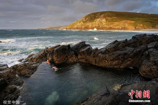 9月17日讯,英国康沃尔郡,康沃尔郡西部山谷的矿坑灌满了海水,成为完美的游泳池。图片来源:视觉中国