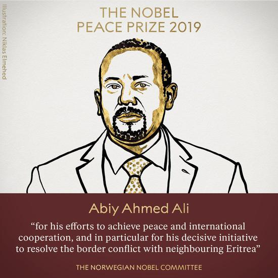 [环球网快讯]据诺贝尔奖官方网站最新消息,北京时间10月11日17时许,挪威诺贝尔委员会宣布,将2019年诺贝尔和平奖授予埃塞俄比亚总理阿比•艾哈迈德•阿里,以表彰他为和平和国际合作所做的努力,尤其是他为解决与邻国厄立特里亚的边界冲突所采取的果断行动。