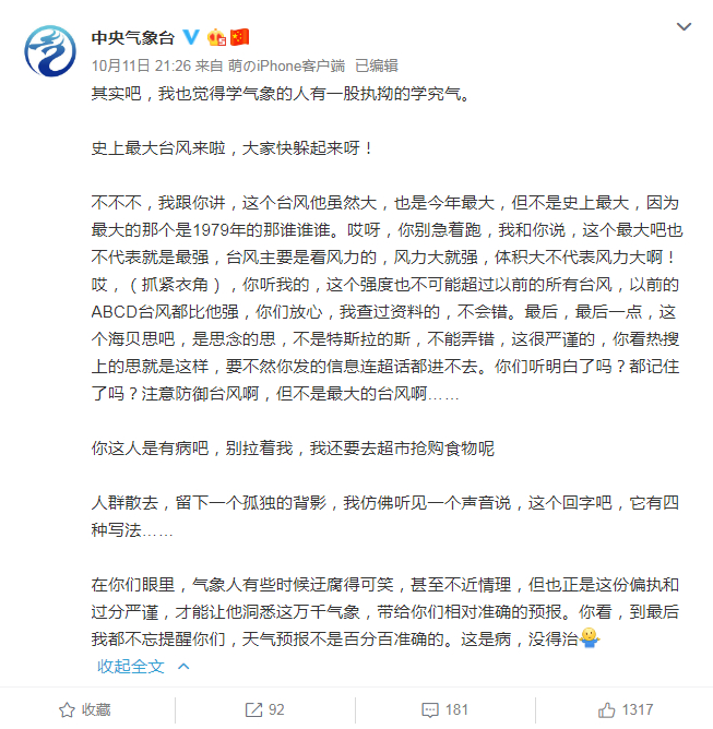 社交媒体上,甚至有网友称“海贝思”为“地球史上最大的一次台风”……
