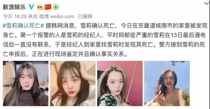 就在昨天(10月14日),25岁的韩国艺人崔雪莉自杀去世的消息居然弄瘫了新浪微博!