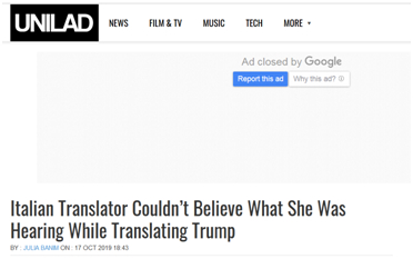 英国互联网媒体“unilad”:意大利翻译无法相信她在翻译特朗普的话时听到了什么