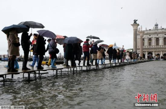 另一方面,威尼斯知名景点威尼斯总督宫12日表示,即便潮水上涨,依然会照常营业,建议民众使用架升的步道走到入口,许多旅馆也为游客提供过膝雨靴。