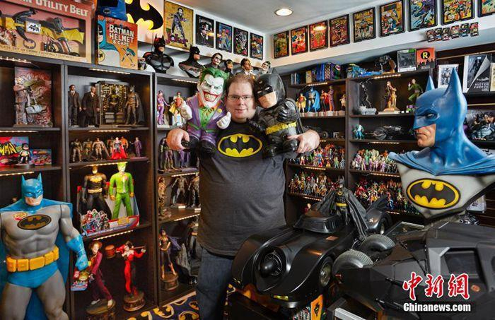 美国佐治亚州的布拉德·拉德那(Brad Ladner)自1988年《蝙蝠侠:家庭之死》发售时开始收集蝙蝠侠周边,收藏8226个蝙蝠侠有关纪念品。吉尼斯世界纪录官方供图