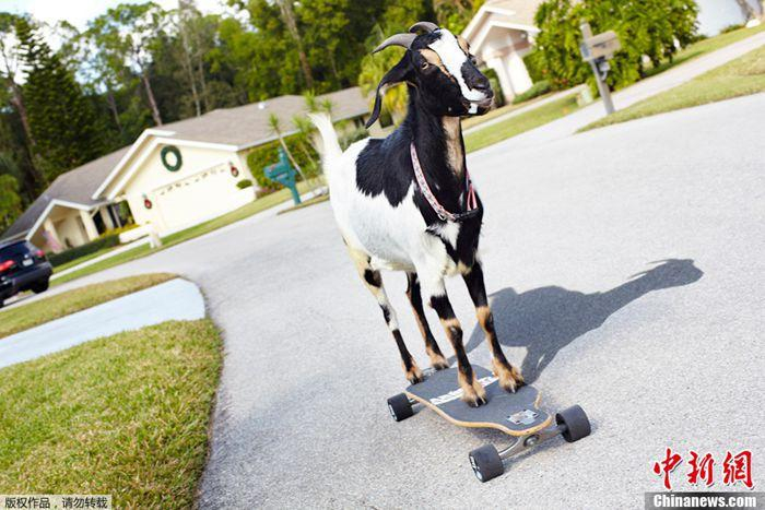 图为用滑板滑行最远距离的山羊。