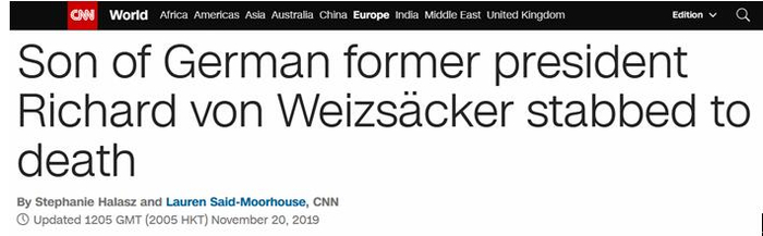 德国前总统之子遇刺身亡 默克尔表示哀悼