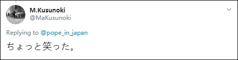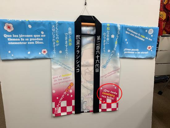 有意思的是,在访问期间,教皇还得到了来自日本民间团体的一份礼物——印有他本人头像及日本元素的一件短褂。