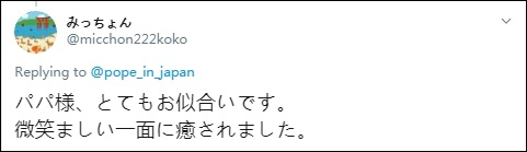 “教皇阁下穿上去非常合身。我被您的微笑治愈了”