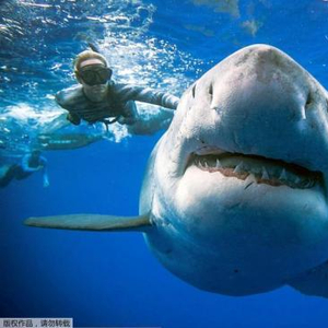 资料图:大白鲨与潜水者同游。 图片来源:ICphoto