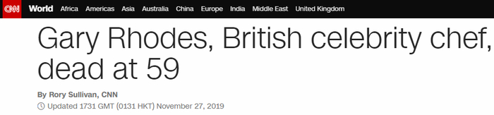 [环球网报道 见习记者 朱海逸]据美国有线电视新闻网(CNN)报道,当地时间26日,英国明星厨师加里•罗德斯在录制节目期间突然感到身体不适,于当天晚些时候死亡,享年59岁。对此,包括主持知名美食综艺《地狱厨房》的明星主厨戈登•拉姆齐在内的多位名厨纷纷致哀。