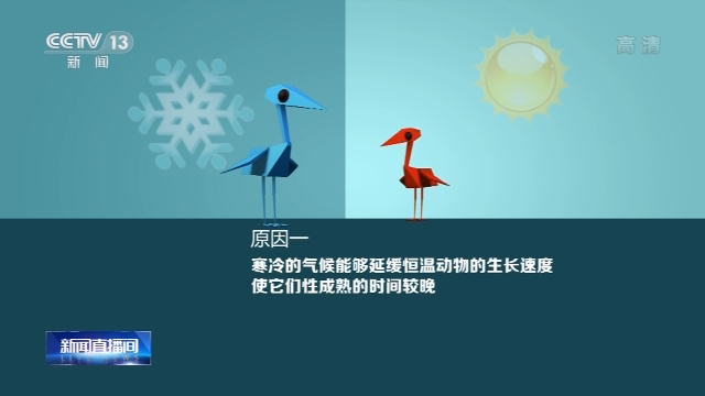 伯格曼法则指出,在恒温动物中,同一种动物生活在较温暖地区的个体通常小于生活在较寒冷地区的个体。造成这种结果的原因可能有二:一是寒冷的气候能够延缓恒温动物的生长速度,使它们性成熟的时间较晚,个子也就长得更大一些;二是同一种物质,在同等温度下,体积愈大,散热愈慢。