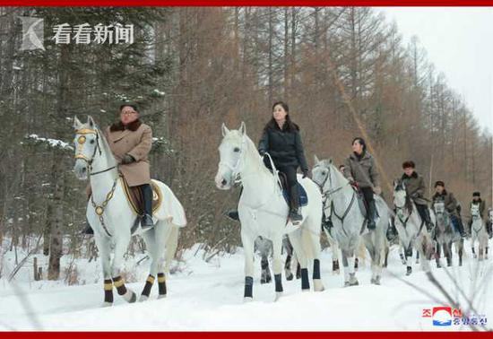 朝鲜官媒日前公布朝鲜最高领导人金正恩与夫人李雪主前往白头山时溪边小憩和一前一后骑马登山的照片,引发韩国媒体关注。