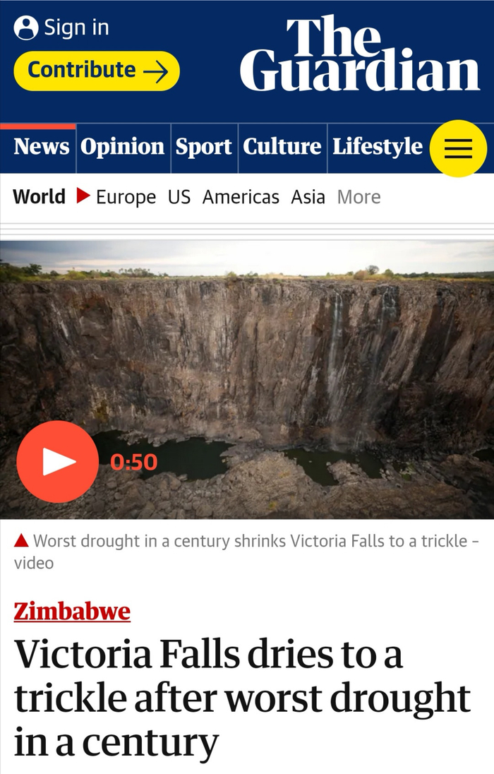 当地旅游市场工作人员表示,瀑布几乎完全干涸了,虽然每年的旱季都会导致瀑布干涸,但今年的旱季在6月份就开始了,可以说这是维多利亚瀑布有史以来最长的旱季。