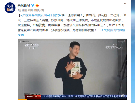 原标题:央视揭韩国娱乐圈自杀魔咒