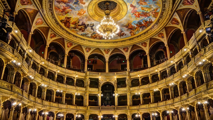 于1884年落成的匈牙利国家歌剧院,当年由奥匈帝国皇帝弗朗茨。约瑟夫和布达佩斯市共同出资打造。壮观的天顶画“酒神的诞生”和辉煌的水晶大吊灯,令人目眩神迷。四层镂刻着金花银叶的巴洛克风格包厢,环绕出华丽异常的马蹄形金色音乐大厅。金碧辉煌的歌剧院礼堂还保留着当年茜茜公主的专属包厢。这个“金色的艺术殿堂”幸运的逃过了两次世界大战战火的摧残,完好地保留了132年前的原貌。虽然战火没有伤及它分毫,然而时光流逝仍然让其留下了“岁月的痕迹”。为了使得这颗蒙尘明珠再放光芒,重建和修复工程显得愈发重要。