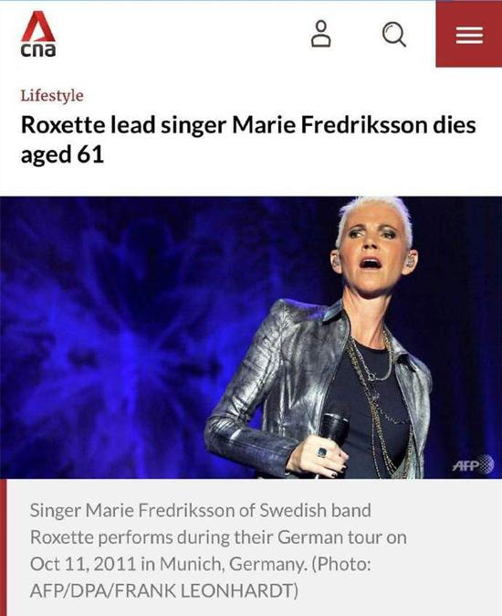 原标题:与癌症抗争17年 瑞典国宝级乐队Roxette女主唱去世