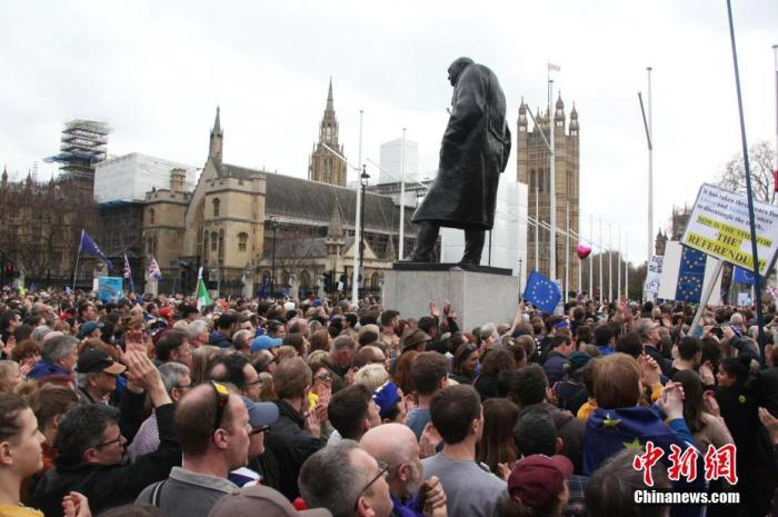 资料图:2019年3月23日,伦敦市中心举行了大规模呼吁举行“第二次脱欧公投”的示威游行。 中新社记者 张平 摄
