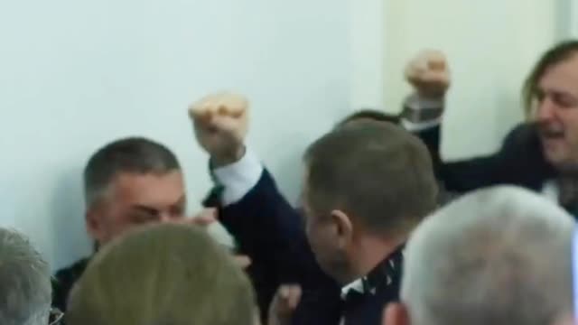梅德韦丘克一派的议员舒夫里奇上前撕掉海报,结果另一派的一名议员冲上去对着舒夫里奇的脸就是一拳。舒夫里奇也不甘示弱,奋起反击,再加上两派议员上来“助战”,场面顿时失控。