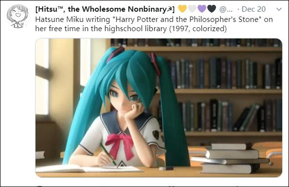 还有网友在疯狂点赞批评罗琳的帖子后,直接将罗琳开除出了《哈利波特》的作者籍,并宣布:初音未来才是真正作者。