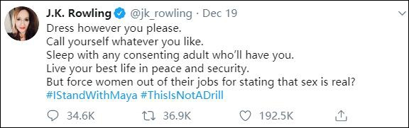 J.K.罗琳声援反跨性别言论 网友:不会看她的书了