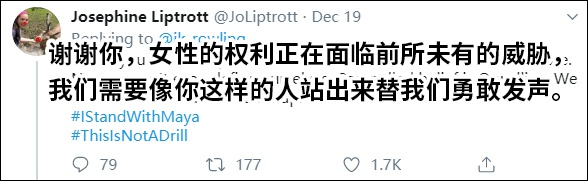 在这条帖子后面,罗琳带上了“我支持玛雅”的话题。