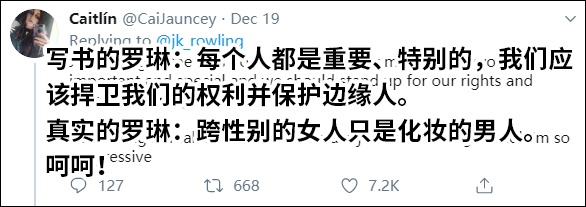 也因为这些原因,罗琳在LGBTQ群体中很受欢迎,此事发生后,前面提到的Darcy表示,“我们真的很累,原本希望她能够代替我们更好的发声。”