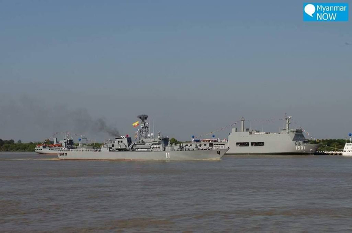 缅甸海上阅兵国产新战舰登场 外观酷似中国054A舰