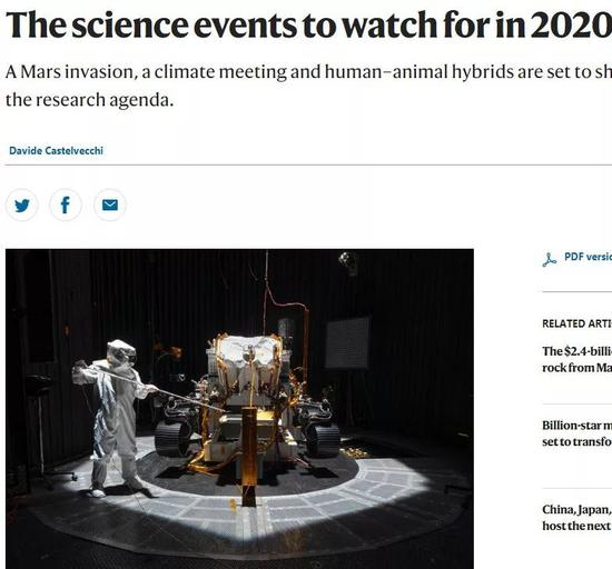 英国《自然》杂志展望了2020年可能对科学界产生重大影响的事件,包括多国将展开火星探测任务。