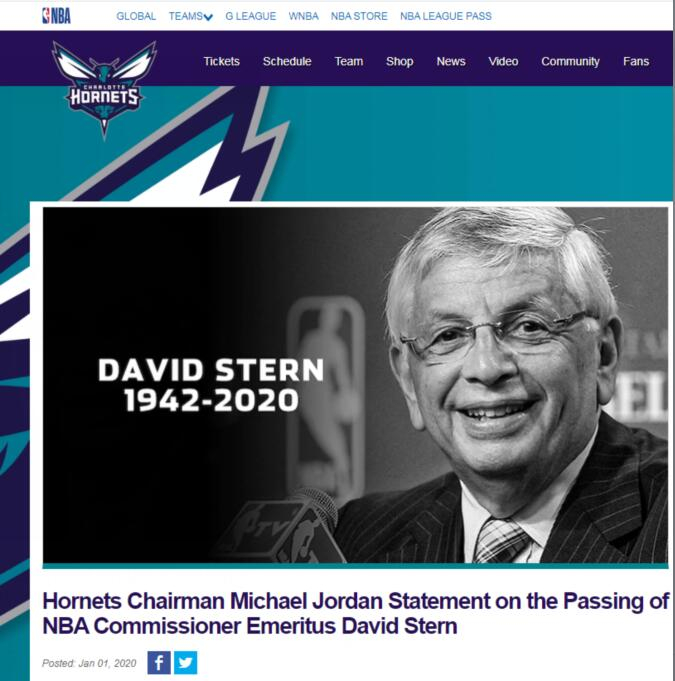 大卫-斯特恩去世 乔丹悼念:没有他就不会有我