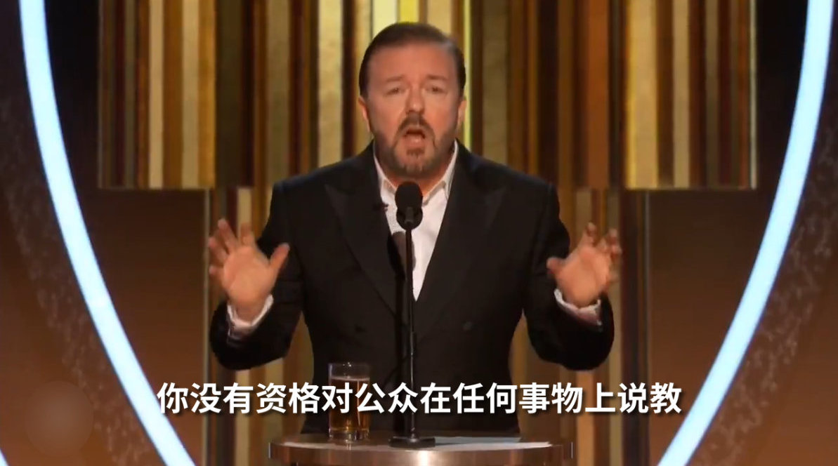 “如果你今晚真的获奖了,不要把它(领奖台)作为发表政治演讲的平台。你没有资格对公众说教。”第五次担任颁奖典礼主持人的热维斯调侃明星们,“你们对现实世界一无所知。你们大多数人在学校的时间还不如格蕾塔•通贝里(瑞典‘环保少女’)。”