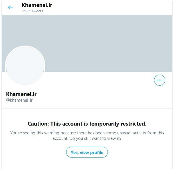 1月11日下午晚些时候,哈梅内伊的推特主页已经不能直接查看,而是出现了“警告:此账号暂时受限。”该提示表示,此账号“有异常活动”,如果访问者要继续查看的话,需要点击下方“查看”按钮。