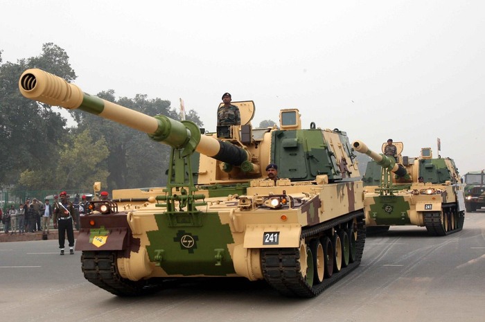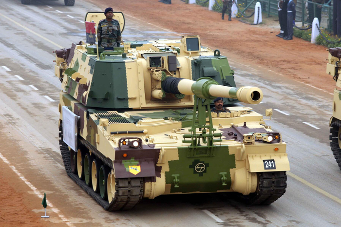 另外一款首次出现在阅兵彩排现场的新式武器是印度从韩国引进的K-9自行榴弹炮。2020年1月16日,印度国防部长拉杰纳特·辛格参加了新下线的K-9 Vajra-T型155毫米自行加榴炮的交付仪式,并亲自试驾了这款自行火炮。印度“国产”的K-9型155毫米自行榴弹炮技术引进自韩国,这款火炮是目前世界上销量最好的155毫米自行榴弹炮之一,除印度外土耳其、芬兰、挪威、爱沙尼亚等国也曾大批购买。