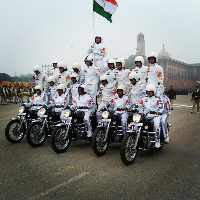在空中编队中,印度最新从美国引进的阿帕奇武装直升机和支奴干运输直升机也陆续登场。2019年7月,首批4架印度空军订购的AH-64E“阿帕奇卫士”攻击直升机于7月27日抵达了位于加济阿巴德的欣登空军基地。这4架“阿帕奇”直升机在拆除了螺旋桨之后由安-124运输机运达。印度空军于2015年9月订购了22架AH-64E直升机,此前于2018年7月成功完成了其首次飞行。第一批印度空军的机组人员于2018年开始在美国进行相关飞行训练。
