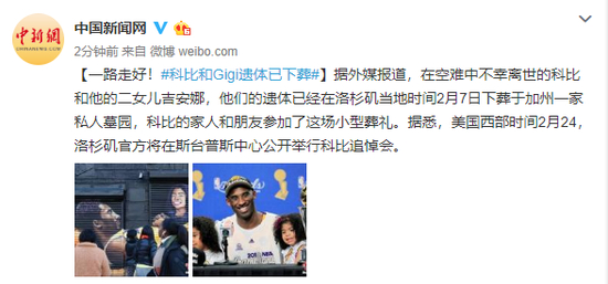 原标题:一路走好!科比和Gigi遗体已下葬