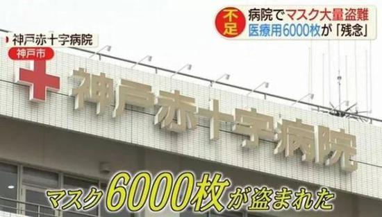 2月17日,神户红十字医院向警方报案,平时保管在医院3楼机械室内的医用口罩,被盗走了四大箱,共计6000只口罩。