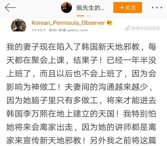 实际上,人们一旦被新天地教会控制,会变得极其疯狂,学生辍学、上班族辞职,若家人不支持信教就离家出走。有些“走火入魔”的信徒还会做出跳楼、自杀、放火等行为,引发社会问题。
