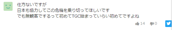 对于主办方的最新应对措施,日本网友这次也是纷纷点赞,并表示理解:“没办法,希望日本(上下)能通力协作度过这个危机,没有观众的TGC也是有史以来的第一次吧”,“没办法,但是很正确”,“真英明啊,希望接下来的活动也都没有观众吧”。(海外网 吴倩)