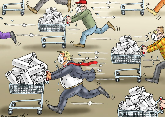 嗯,周末,西方人终于有充足时间购物,终于一出手就把整个超市买空了。但,买食品买饮料买口罩买消毒液,这都可以理解;把所有卫生纸都买空,西方人的脑回路,确实和我们不一样。