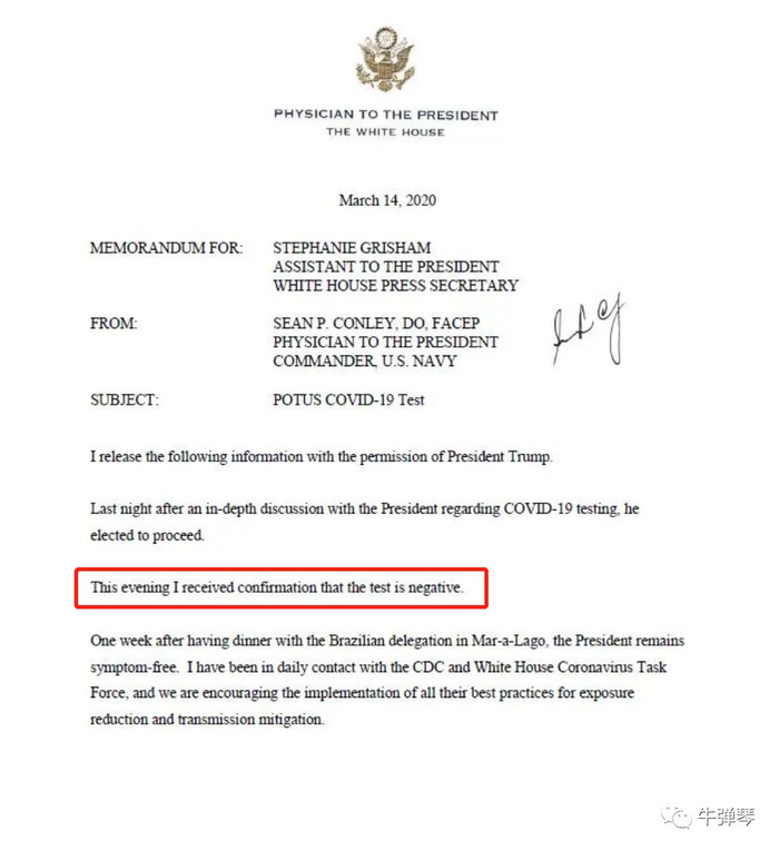 第一件,大统领接受了新冠病毒检测。